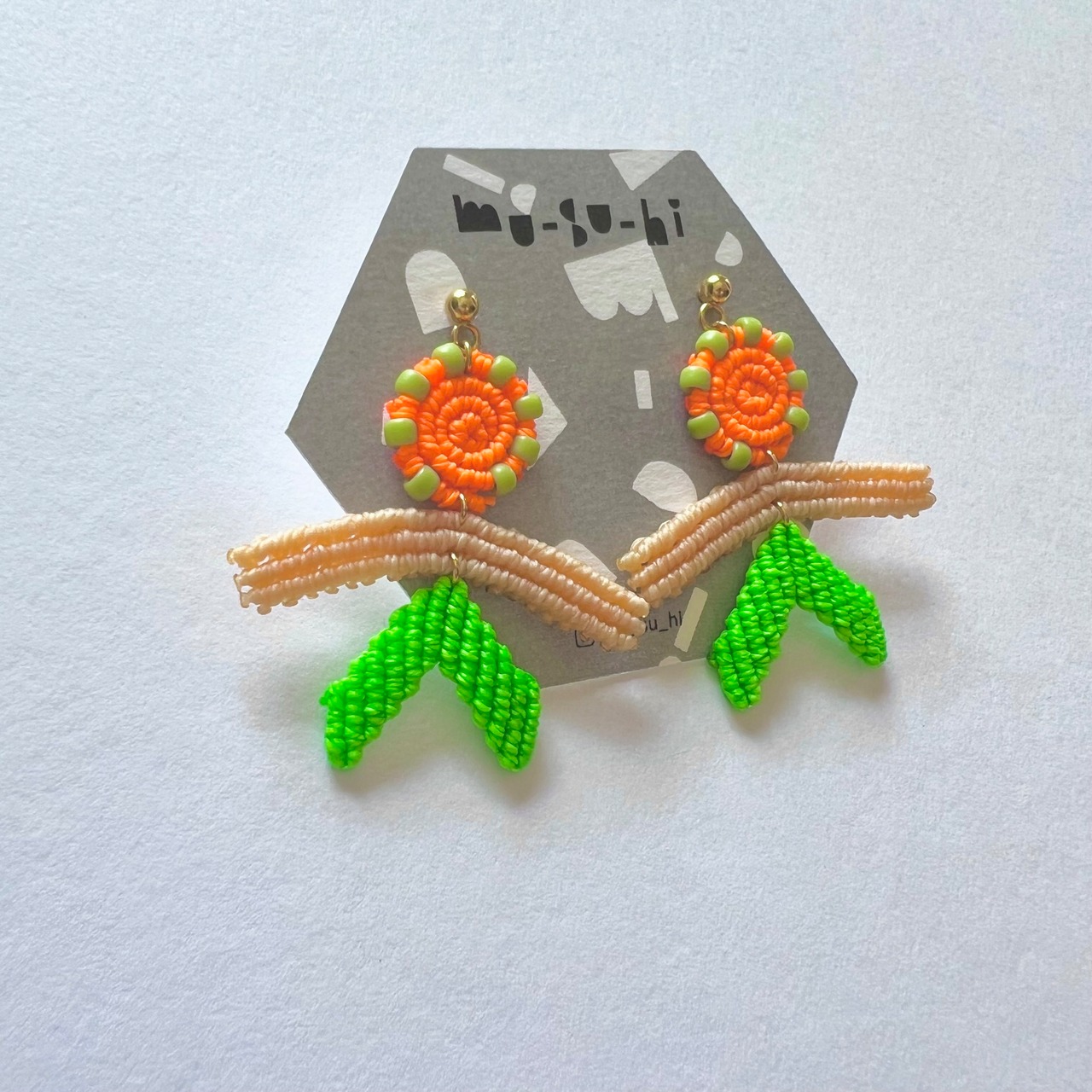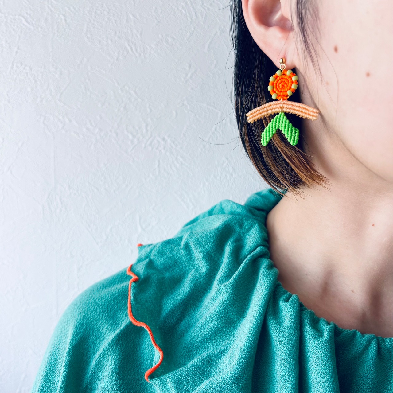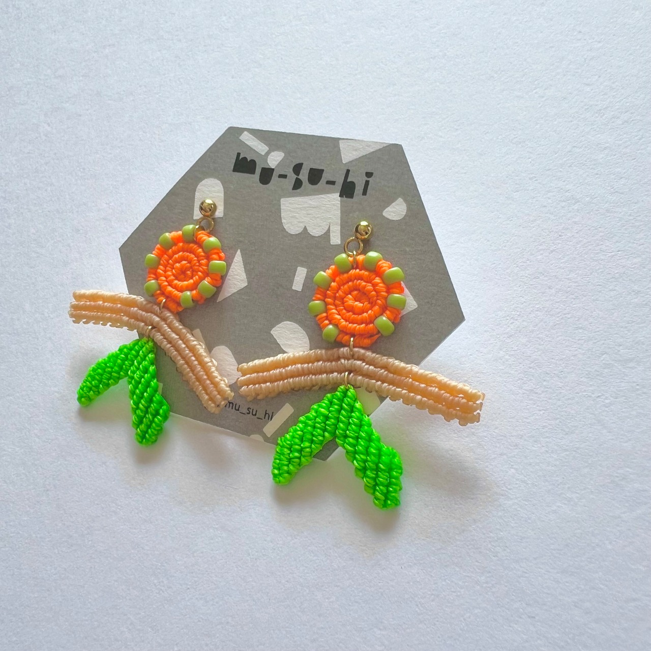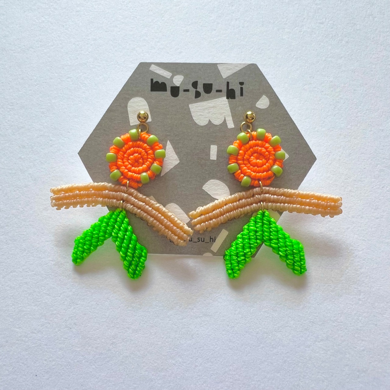 糸とビーズを組み合わせて、マクラメ編みで一つ一つ手編みしております。